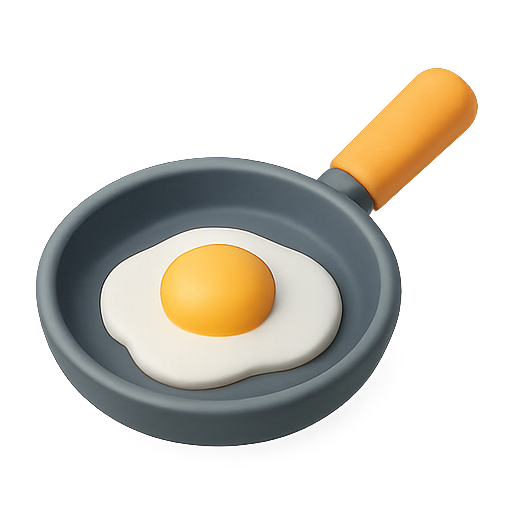 A playful representation of a toy frying pan featuring a fried egg. The design is simple yet appealing, ideal for children's playsets or kitchen-themed decor.