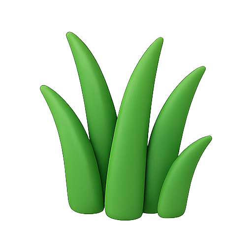 A modern and stylized icon depicting green grass with smooth, curved shapes, suitable for nature-related projects or digital applications.