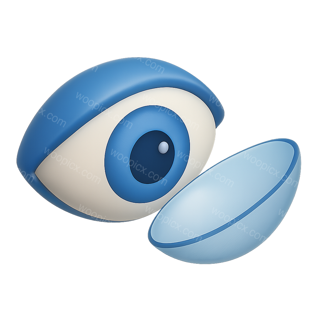 A visually striking 3D representation of a contact lens and eye combination, featuring a blue color scheme and a transparent background, captured in a three-quarter isometric view.