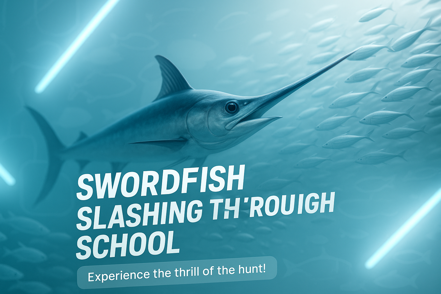 Dynamic Underwater Scene Featuring a Swordfish Hunting