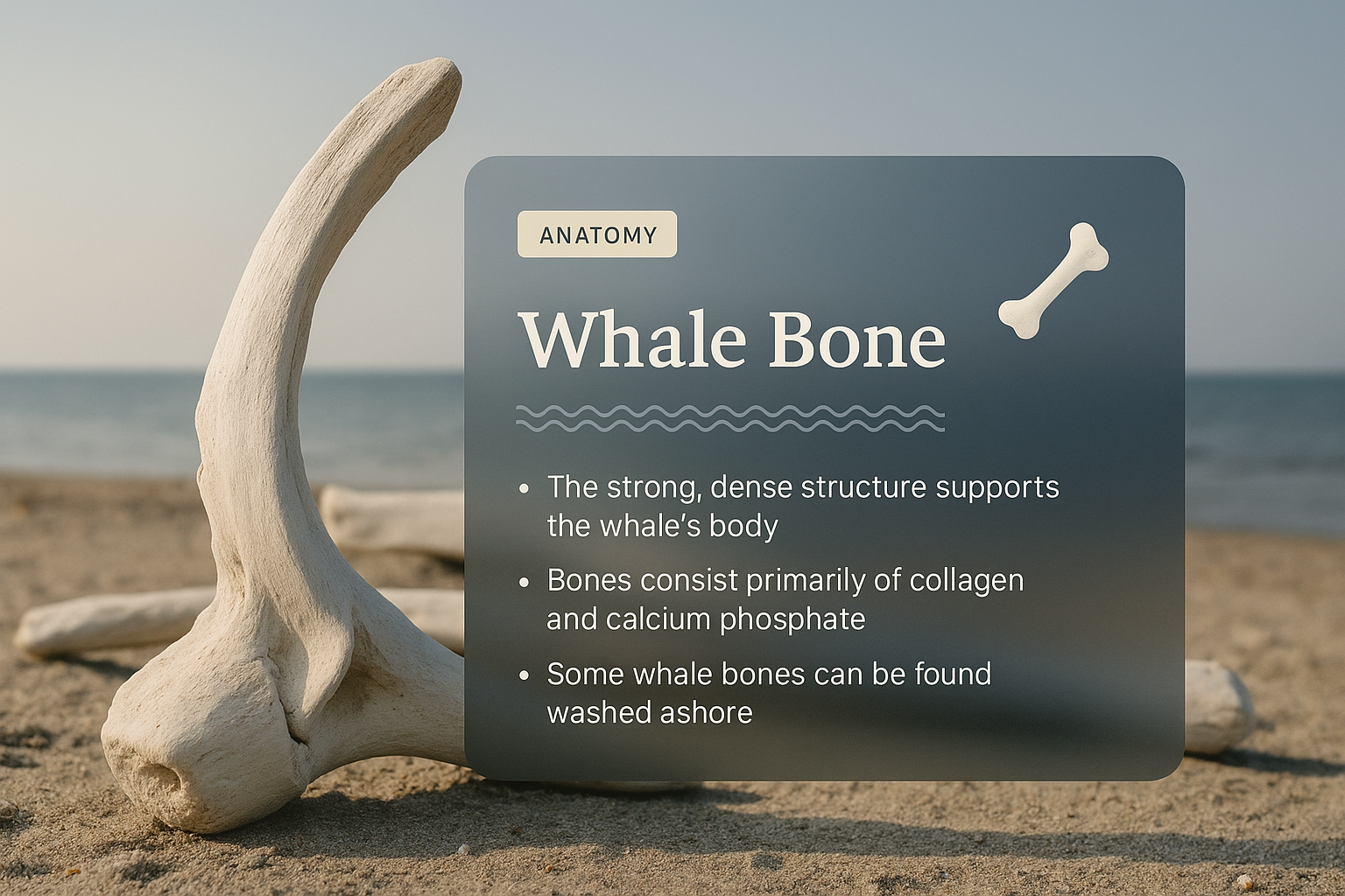 /Collection: /by davooda/Type: PNG/A beautifully designed image featuring a whale bone on a sandy beach, complemented by an informative overlay with a stylish label. The background features a soft gradient, enhancing readability.