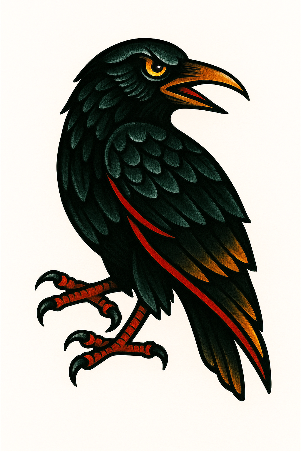 Stylized Black Raven Illustration with Bold Colors