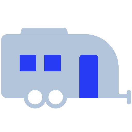 polish-blue simple icon: trailer, camper, mobile home, travel, camping