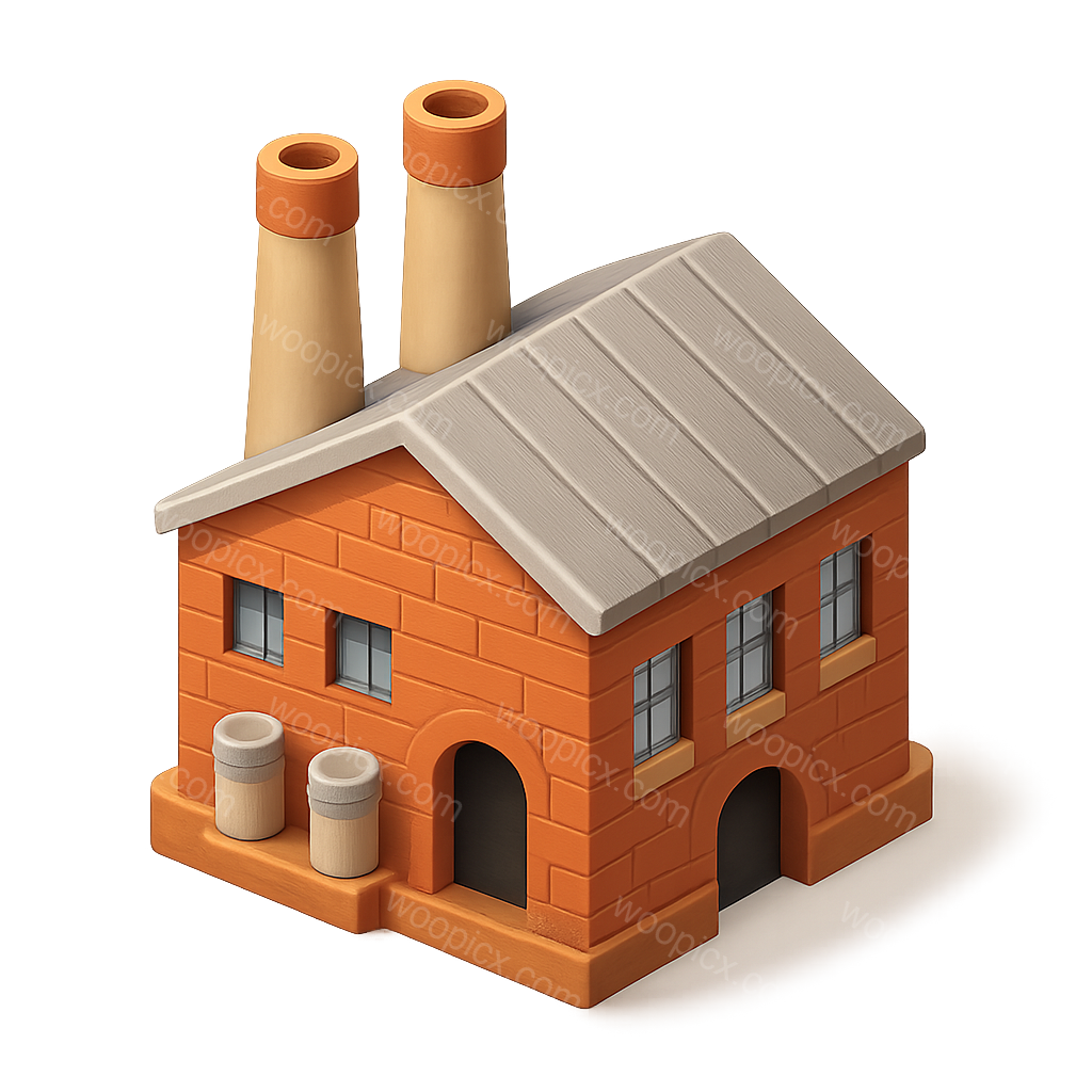 Colorful 3D Icon of a Brick Factory Building