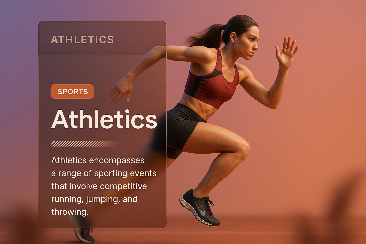 /Collection: /by davooda/Type: PNG/A dynamic 3D illustration of an athlete in motion, integrated with text blocks showcasing the theme of athletics. The design features a gradient background and transparent elements for visual depth.