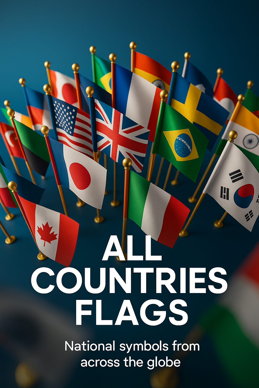 /Collection: /by davooda/Type: PNG/A vibrant 3D display of various national flags, showcasing their unique designs and colors. The scene is set against a smooth gradient background, enhancing the visual impact.