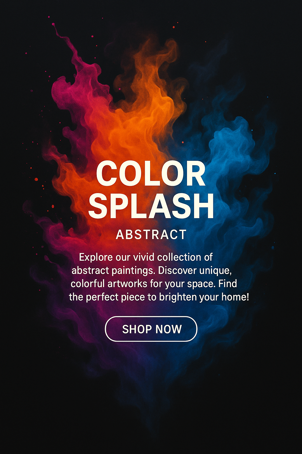 Striking promotional banner featuring a colorful abstract design ideal for showcasing a collection of artwork. Perfect for online art stores or galleries.