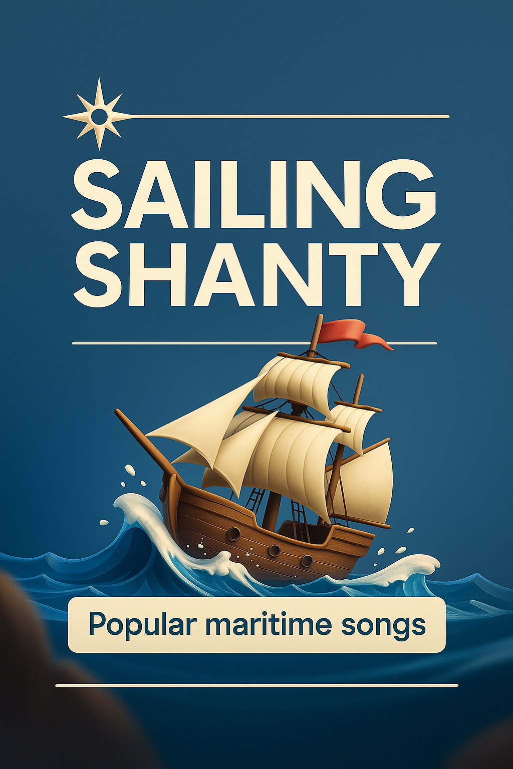 /Collection: /by davooda/Type: PNG/A vibrant 3D illustration featuring a sailing ship navigating dynamic waves, set against a smooth gradient background. The title 'SAILING SHANTY' is prominently displayed above.