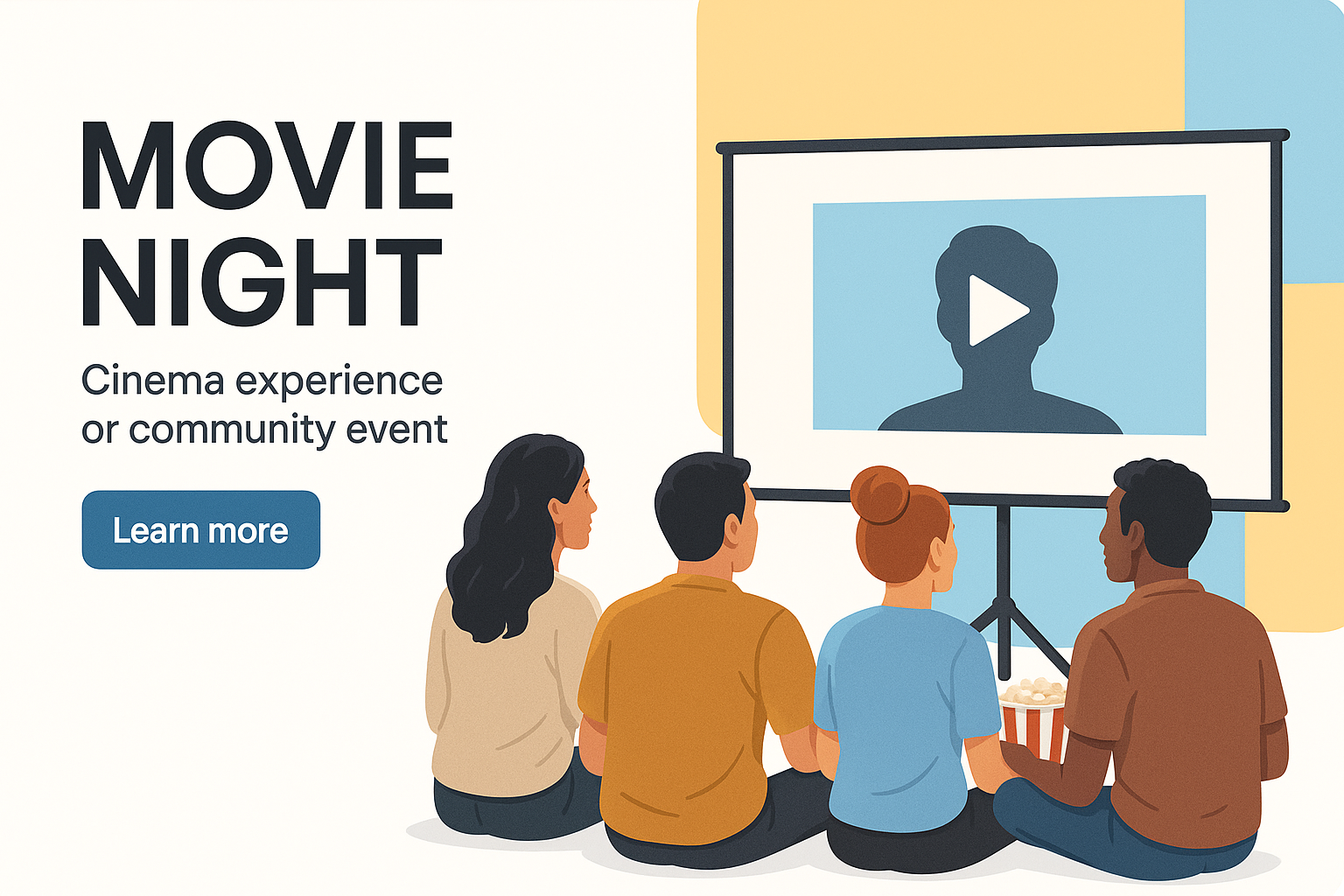/Collection: /by davooda/Type: PNG/A group of diverse individuals sitting together, enjoying a movie projected on a large screen. The setting suggests a community event with a modern, inviting atmosphere.