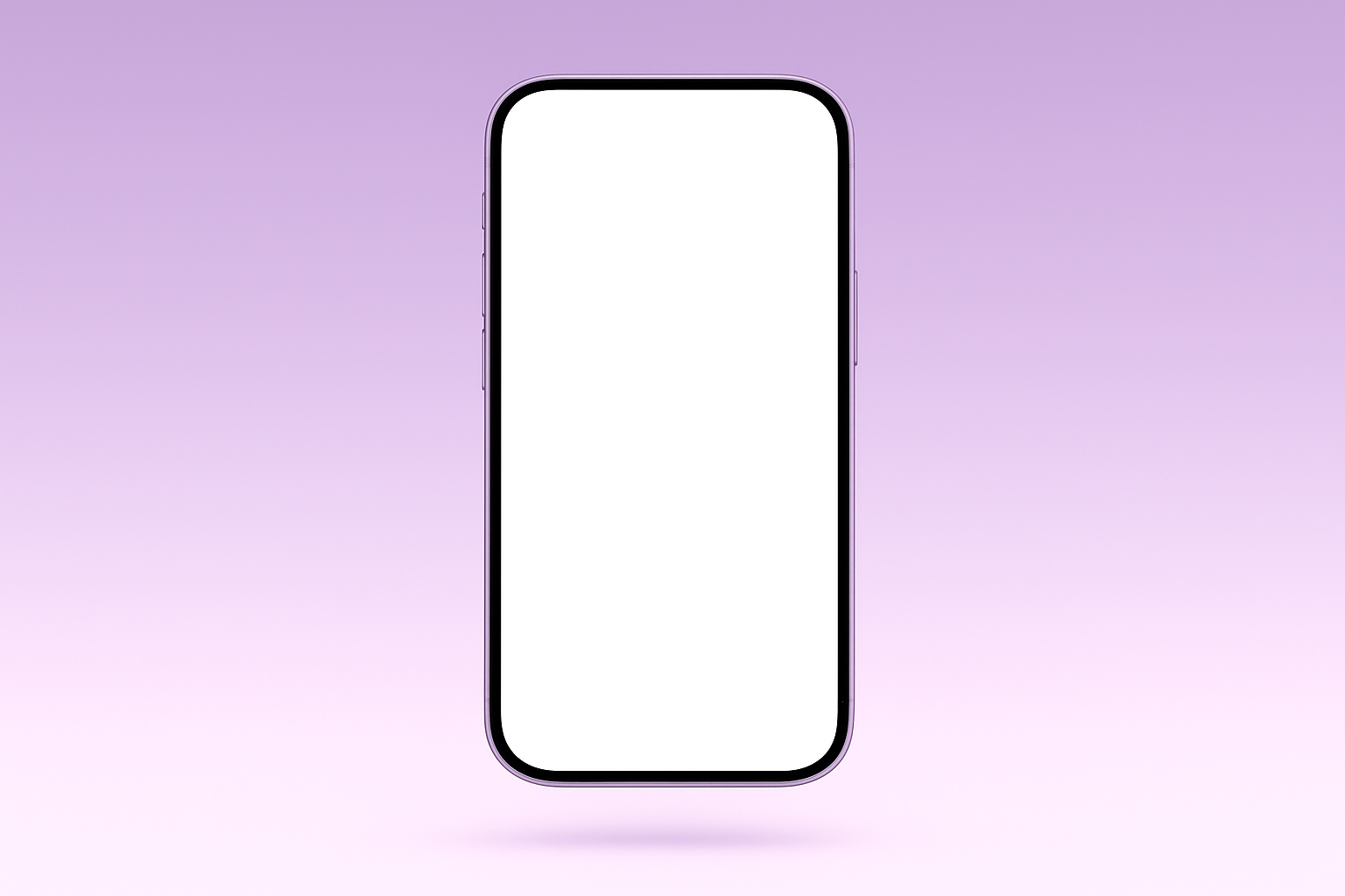 A purple smartphone is depicted levitating against a soft gradient background. The screen is blank, showcasing its sleek design with rounded edges.