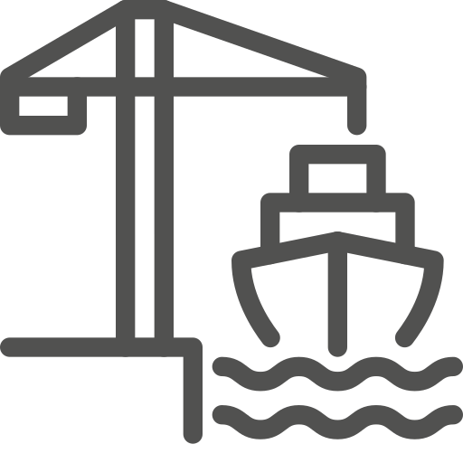 outline simple icon: cargo, crane, loading, logistics, maritime