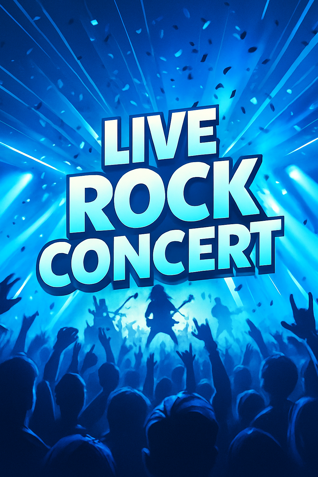 /Collection: /by davooda/Type: PNG/A vibrant rock concert scene capturing a cheering crowd against a backdrop of blue lights and falling confetti. The dynamic composition showcases silhouettes of performers and an energetic atmosphere.