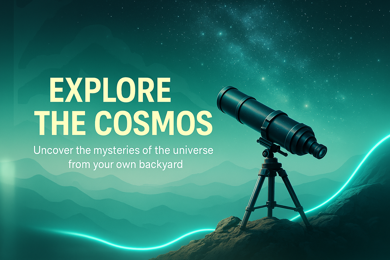 Astronomy Promotion Graphic Featuring Telescope in a Cosmic Landscape