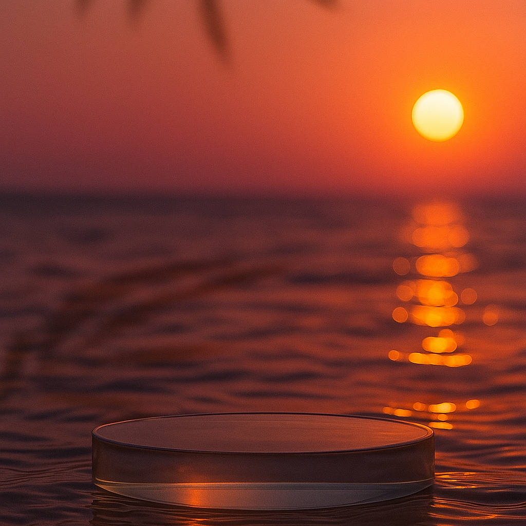 /Collection: /by davooda/Type: PNG/A captivating sunset image featuring a serene water surface reflecting the orange and purple hues of the sky, creating a peaceful atmosphere perfect for relaxation themes.