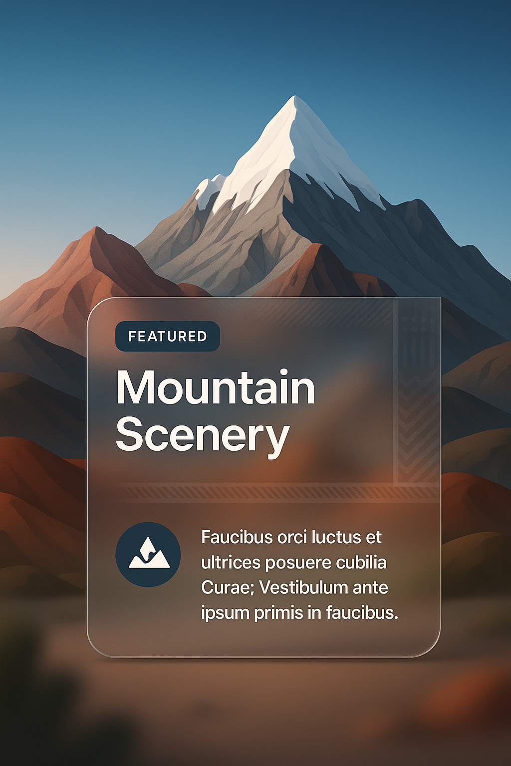 /Collection: /by davooda/Type: PNG/A beautifully rendered 3D illustration of mountains featuring red, brown, and grey hills with snowy peaks. The foreground includes a transparent label with text, enhancing the visual appeal.