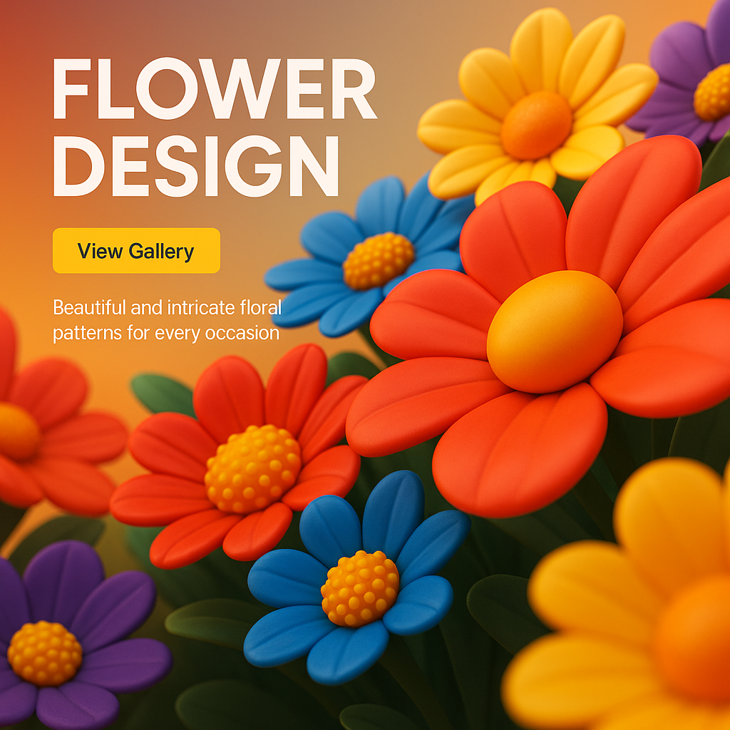 A vibrant graphic showcasing a 3D flower design, featuring colorful petals and a soft gradient background. Ideal for floral-themed promotions and digital galleries.