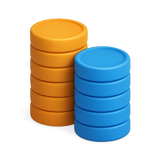 A visually striking arrangement of orange and blue stacked discs, showcasing a modern and playful design. Ideal for educational or promotional uses related to games or learning.