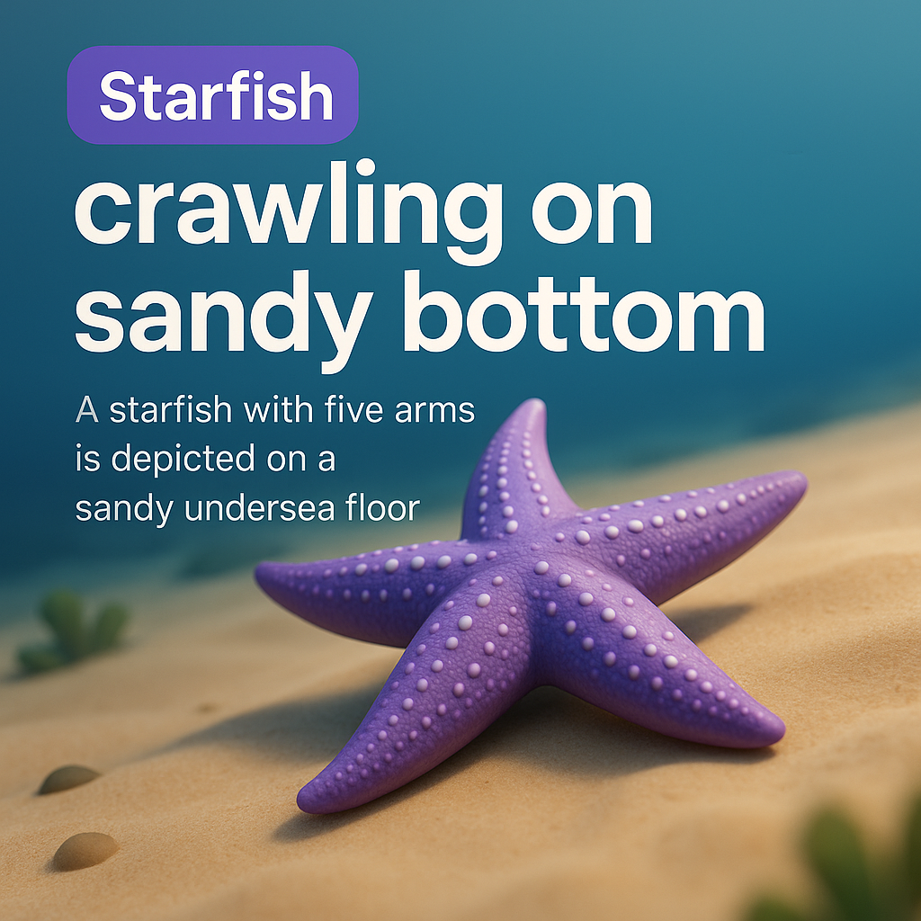 Starfish Crawling on Sandy Ocean Floor with Text Overlay