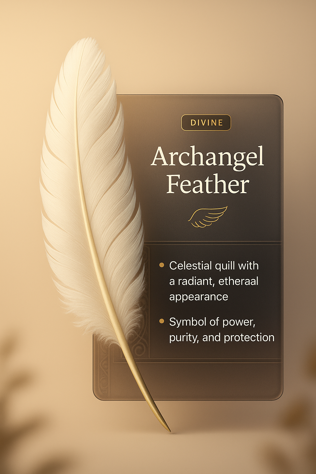 /Collection: /by davooda/Type: PNG/A beautifully rendered 3D illustration of an archangel feather, accompanied by a stylish overlay containing essential information. The design features a smooth gradient background and a clear, readable text block.