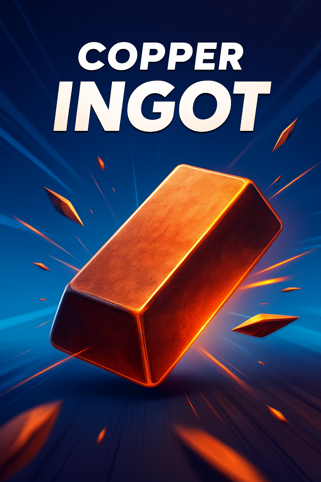 Dynamic Copper Ingot with Bold Text and Vibrant Background