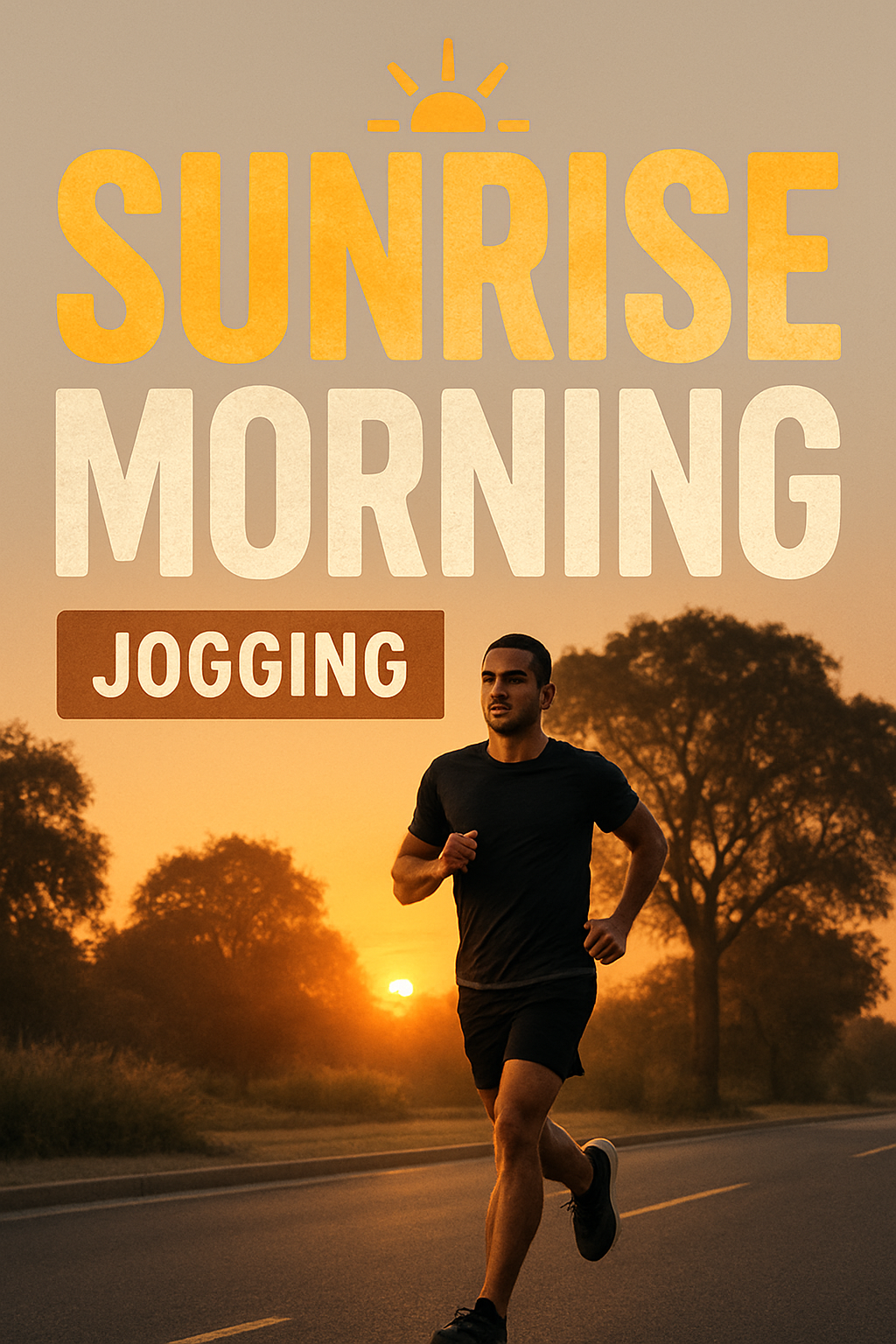 Dynamic Sunrise Jogging Scene with Bold Typography