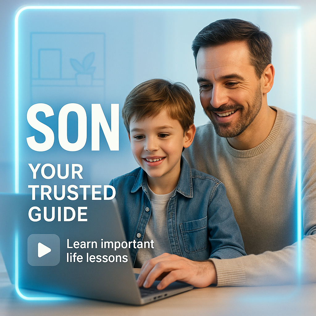 Engaging image of a father and son sharing a learning experience through technology, ideal for educational content and parenting resources.