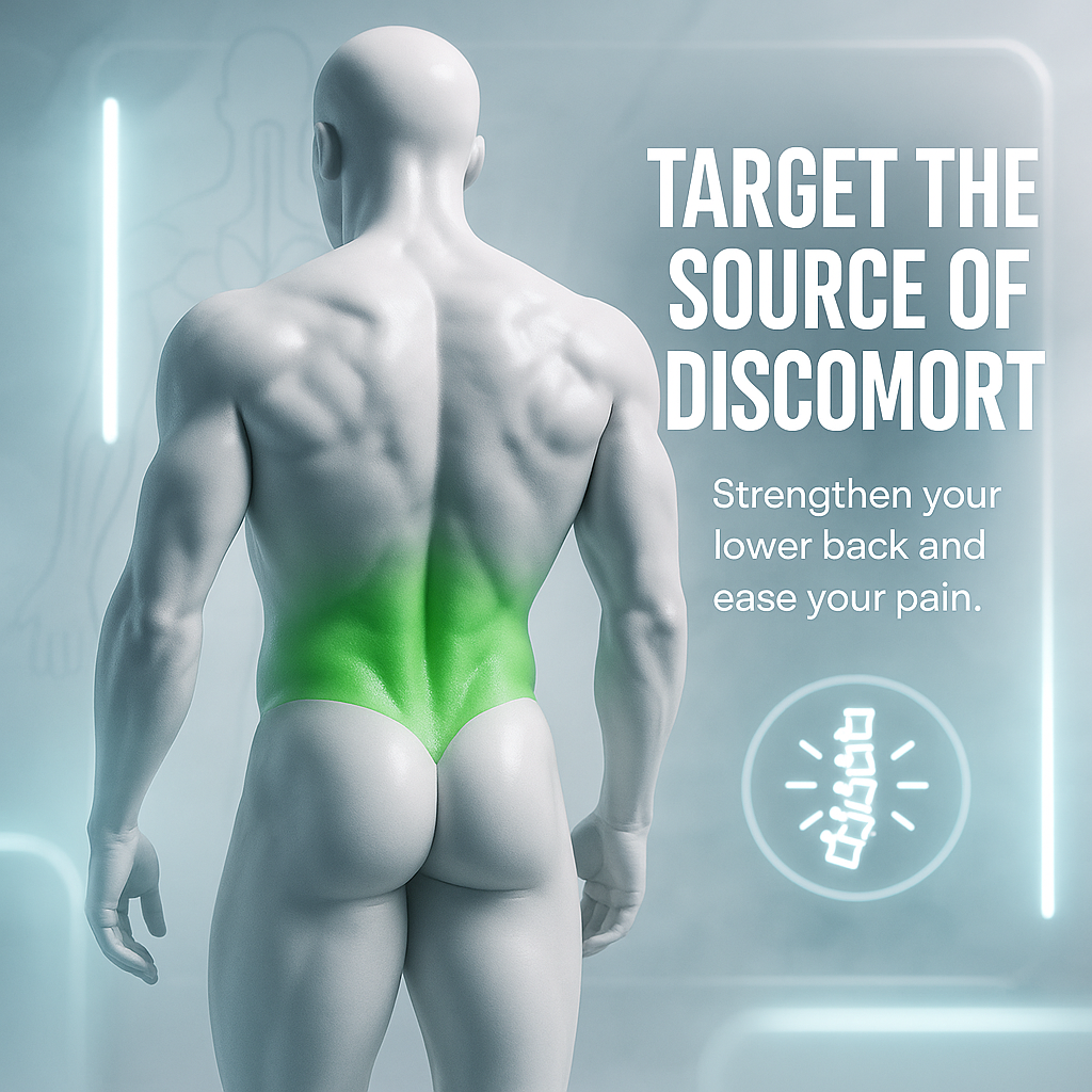 /Collection: /by davooda/Type: PNG/A visually engaging illustration highlighting lower back pain relief strategies with a focus on the lumbar region, suitable for health and wellness contexts.