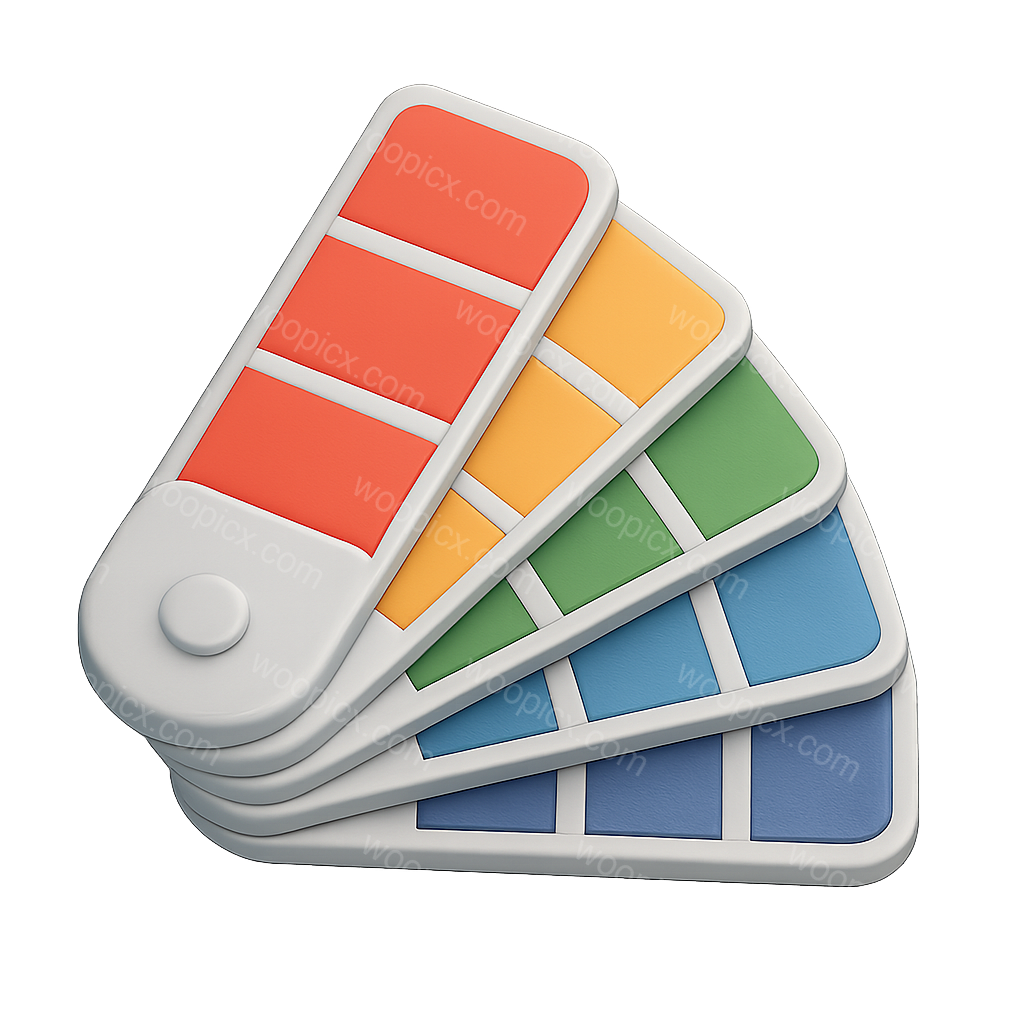 This image showcases a set of 3D color swatches in vibrant colors, arranged in a fanned-out position. The swatches exhibit a smooth, glossy finish, emphasizing their volumetric design.
