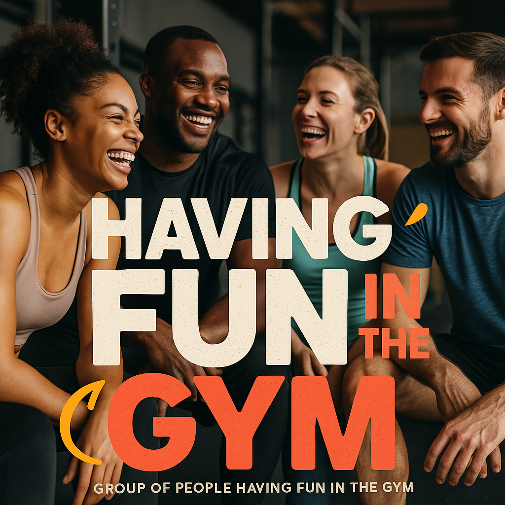 /Collection: /by davooda/Type: PNG/Engaging social media graphic showcasing a diverse group of friends laughing and enjoying their time at the gym, perfect for fitness motivation and community engagement.