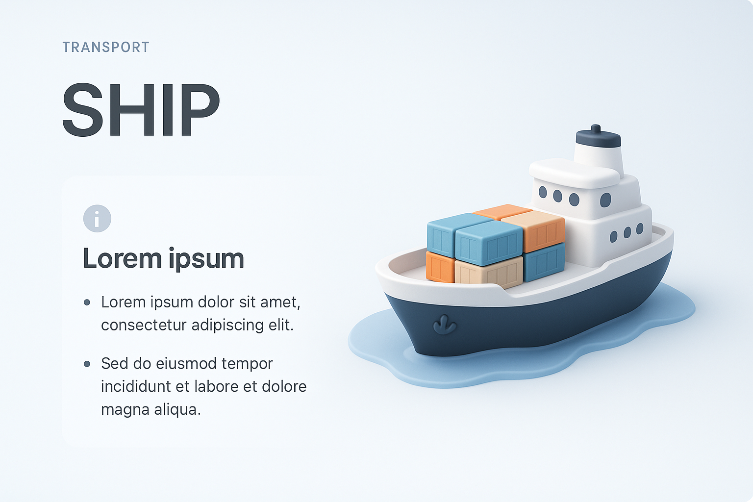 A sleek 3D illustration of a ship with colorful cargo containers, set against a smooth gradient background. The design emphasizes clarity and realism.