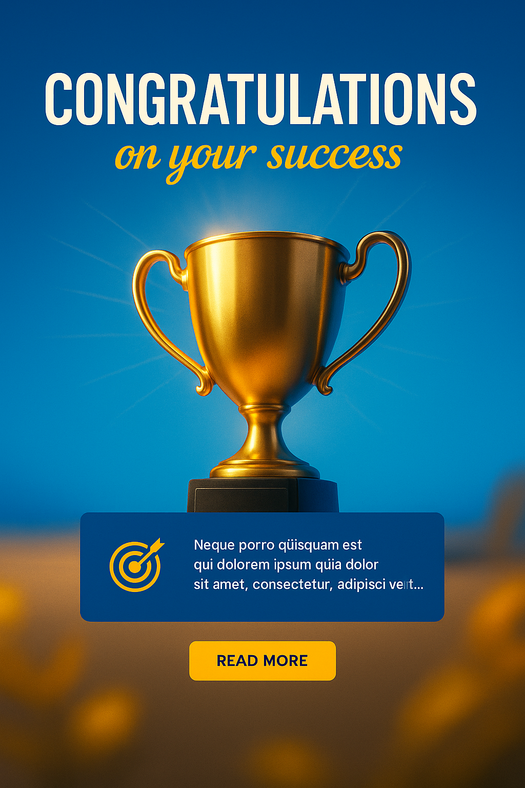 /Collection: /by davooda/Type: PNG/This vibrant social media post features a golden trophy against a blue background, celebrating success. The design aims to engage audiences with a motivational theme.