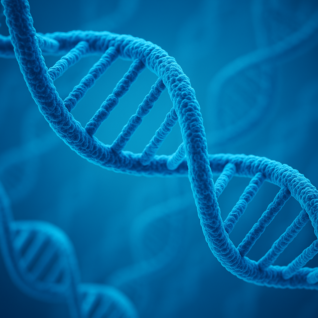 A detailed 3D illustration of a DNA double helix in a vibrant blue color scheme, ideal for educational purposes in biology or genetics.