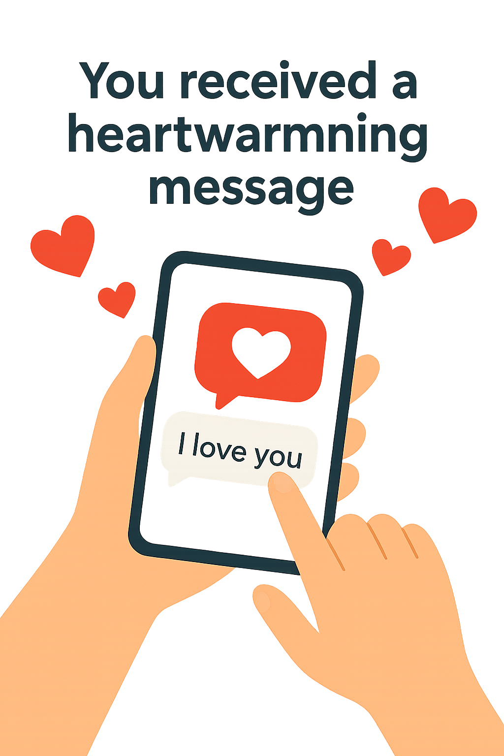 /Collection: /by davooda/Type: PNG/Illustrative graphic depicting a smartphone displaying a heartfelt message. The design features warm colors and playful heart icons, suitable for social media posts or greeting cards.