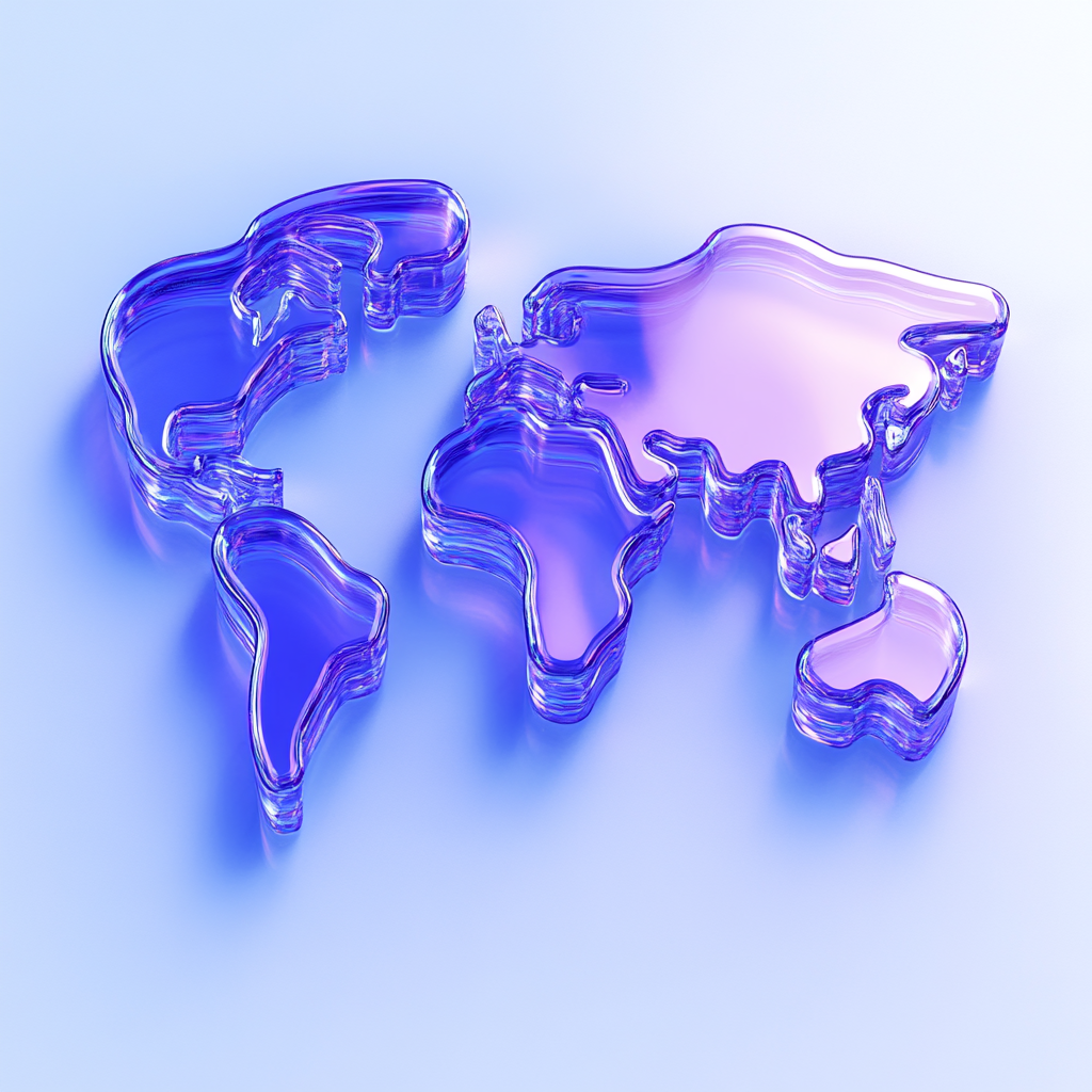 /Collection: /by davooda/Type: PNG/A contemporary, stylized representation of the Asian continent, created in a translucent purple design. Ideal for digital art, educational purposes, or modern decor.