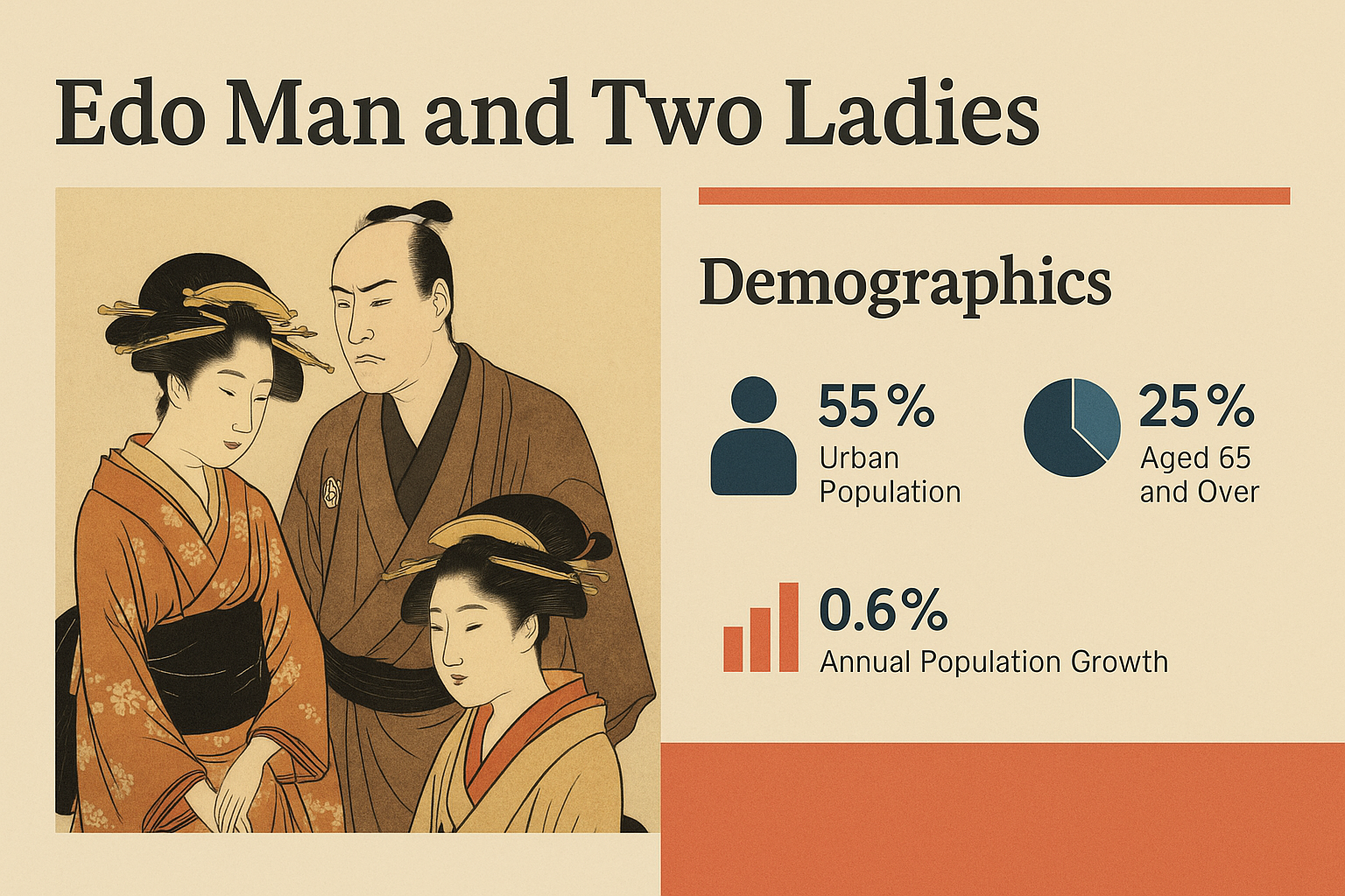 Infographic Featuring Edo Period Demographics and Cultural Illustration