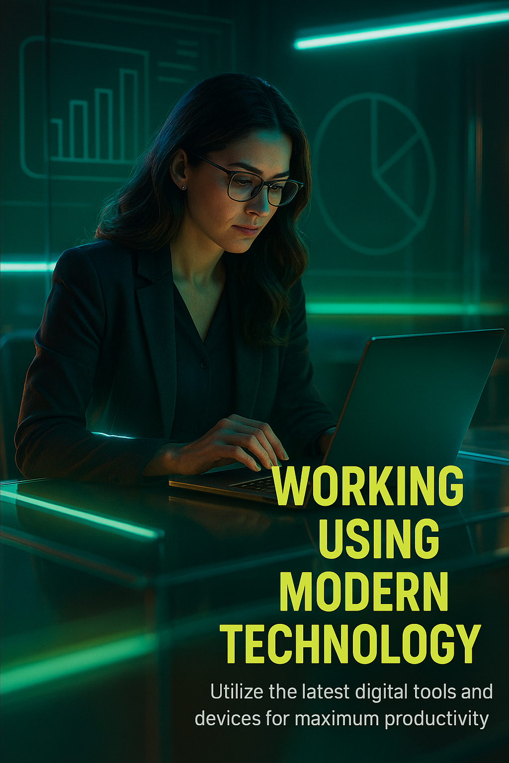 /Collection: /by davooda/Type: PNG/A visually striking image of a woman working on a laptop in a tech-inspired environment, emphasizing modern productivity tools and digital innovation suitable for tech-related content.