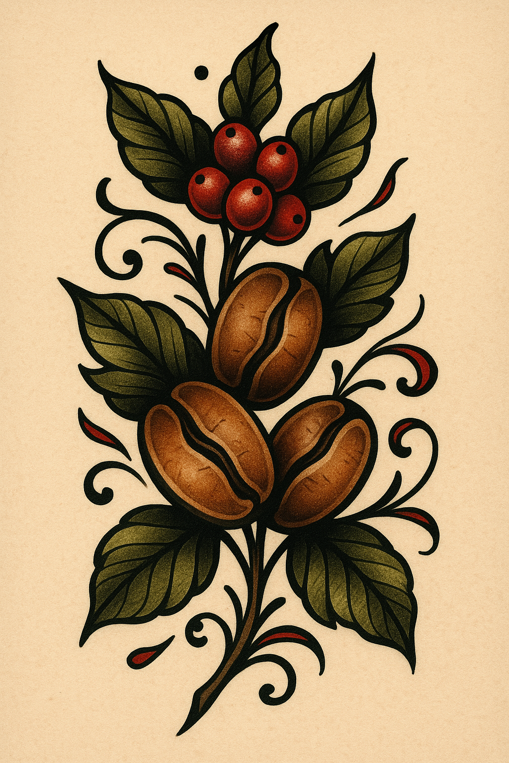 Illustrative Coffee Plant Design with Beans and Berries