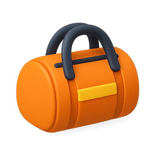 A vibrant 3D illustration of an orange duffel bag with black handles, perfect for use in travel or fitness-themed designs. The modern style adds a playful touch to any project.