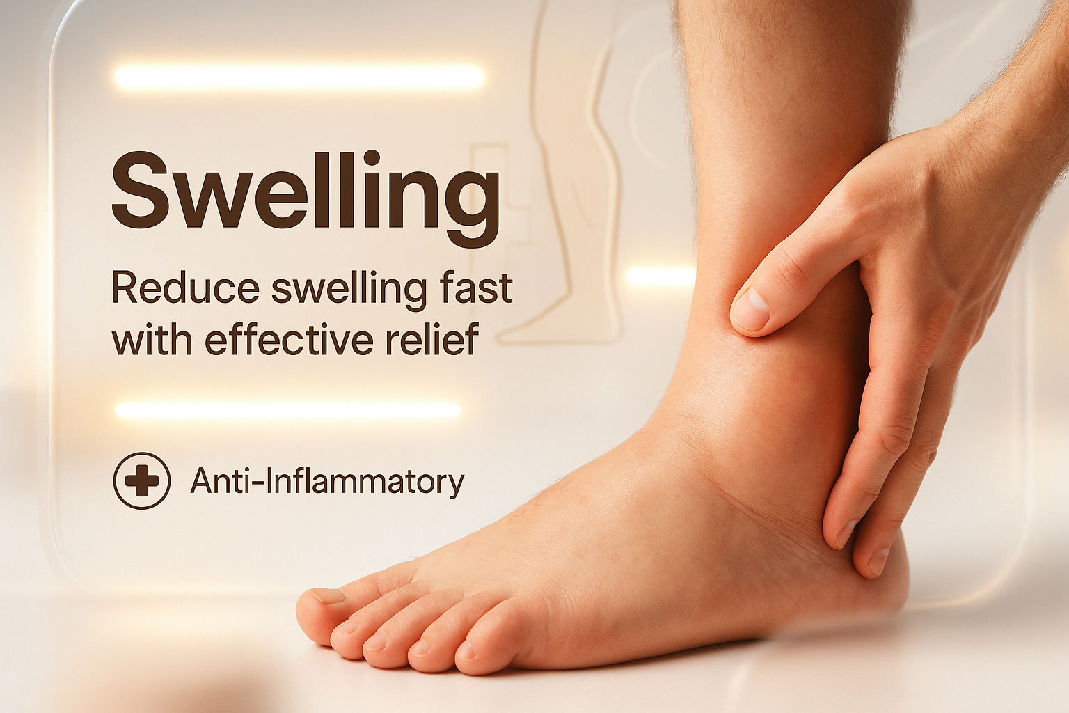 Informative health graphic presenting solutions for swelling relief, featuring a clear and modern design suitable for medical or wellness promotions.