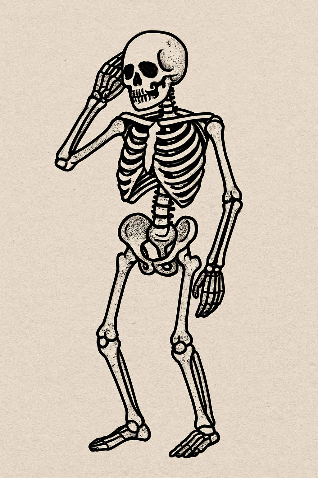 Detailed Illustration of a Skeleton in a Thoughtful Pose