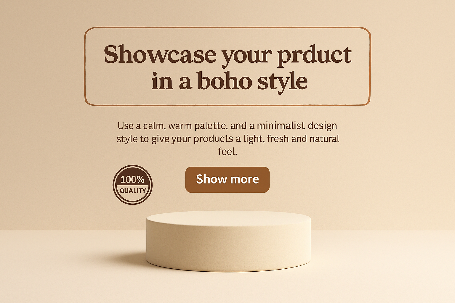 A clean and minimalist product presentation featuring a smooth podium against a warm, neutral background. The design emphasizes a calm aesthetic with engaging typography and a clear call to action.