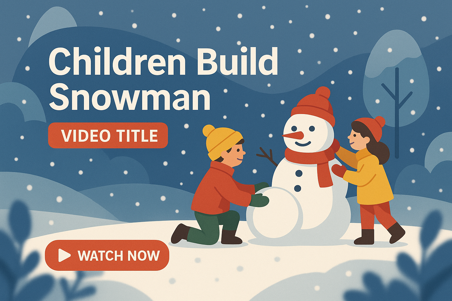 /Collection: /by davooda/Type: PNG/Colorful and engaging graphic depicting children joyfully building a snowman in a winter landscape, ideal for a family-friendly video or social media content.