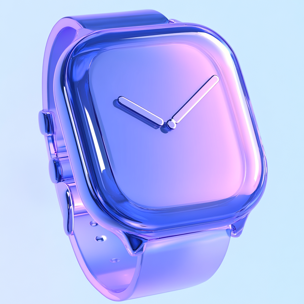 A visually striking 3D render of a modern smartwatch that features a sleek, glossy design in shades of blue and purple, ideal for tech-related marketing and product showcases.