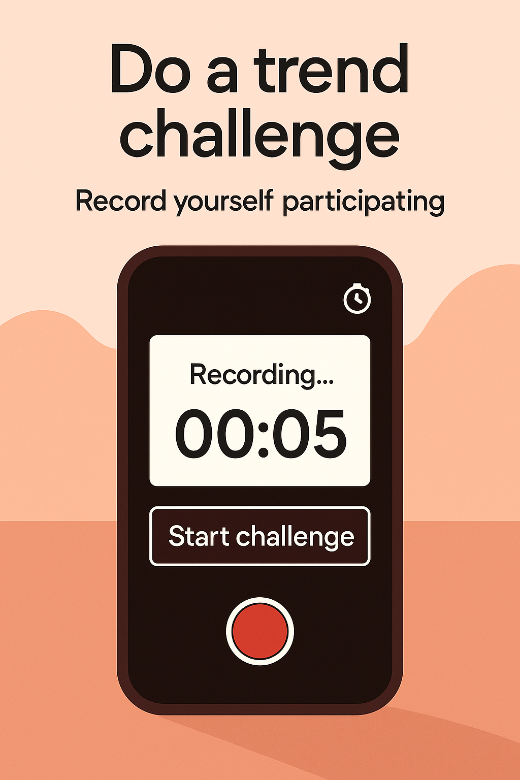 /Collection: /by davooda/Type: PNG/Illustrative social media post encouraging users to participate in trend challenges, featuring a stylized recording device with modern design elements, ideal for digital engagement.