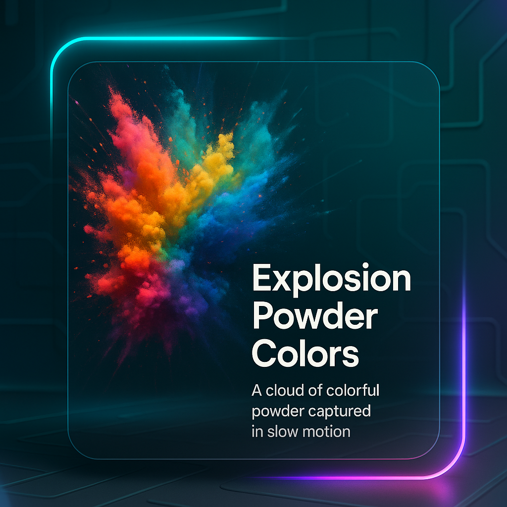 A visually striking graphic showcasing a colorful powder explosion captured in slow motion, designed with a modern aesthetic suitable for creative projects.