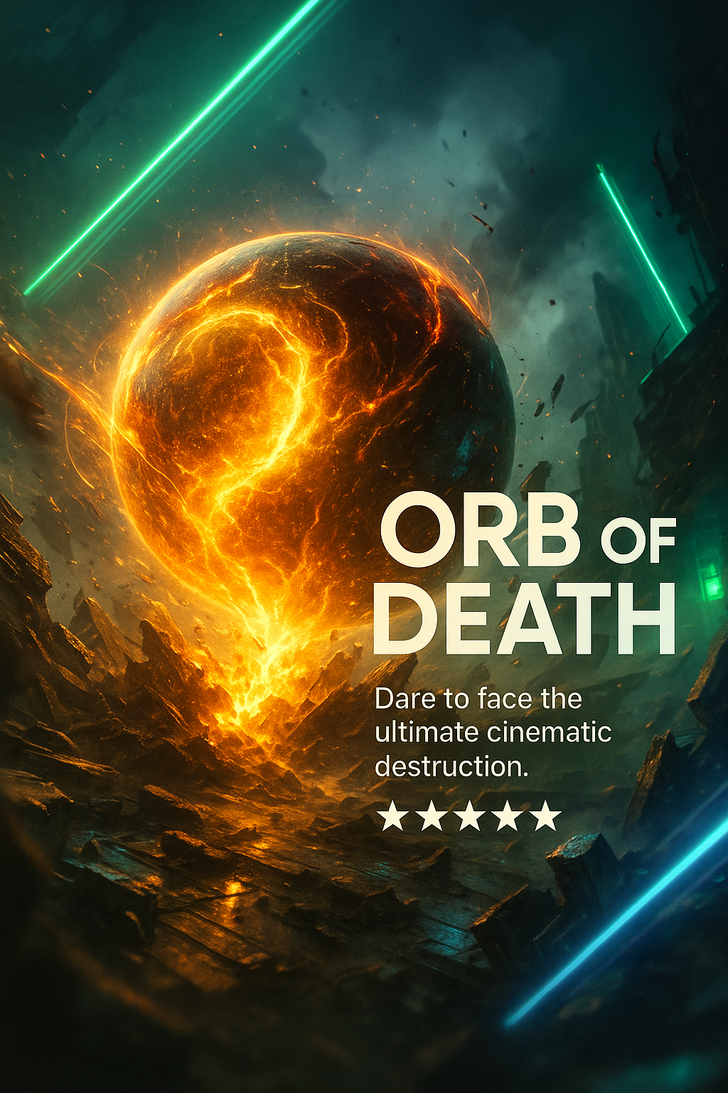 /Collection: /by davooda/Type: PNG/A visually striking design featuring a glowing orb of death amidst a dramatic backdrop. Neon accents and layered composition create an engaging, cinematic aesthetic.