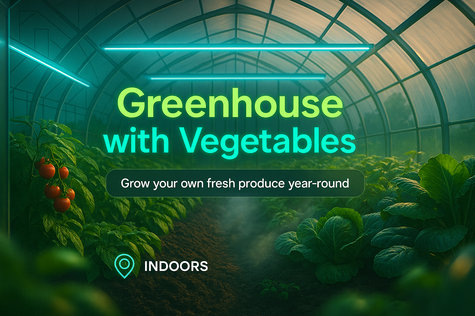 Indoor Greenhouse with Fresh Vegetables in Lush Setting