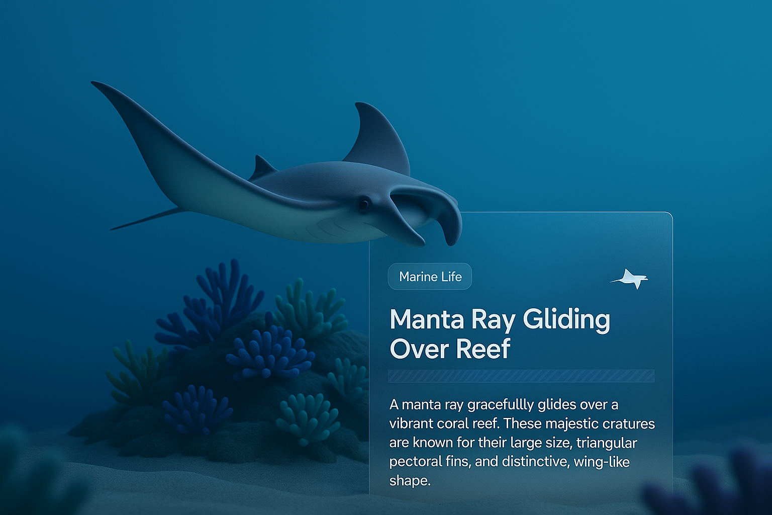 A stunning 3D illustration of a manta ray gracefully gliding over a vibrant coral reef. The serene underwater scene captures the elegance and beauty of marine life.
