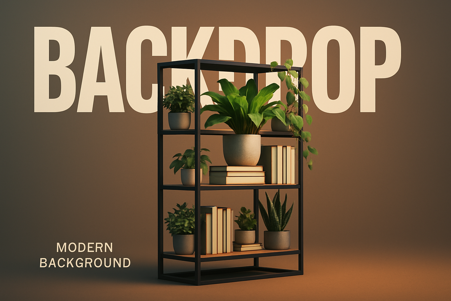 Contemporary Bookshelf with Plants for Modern Backdrops