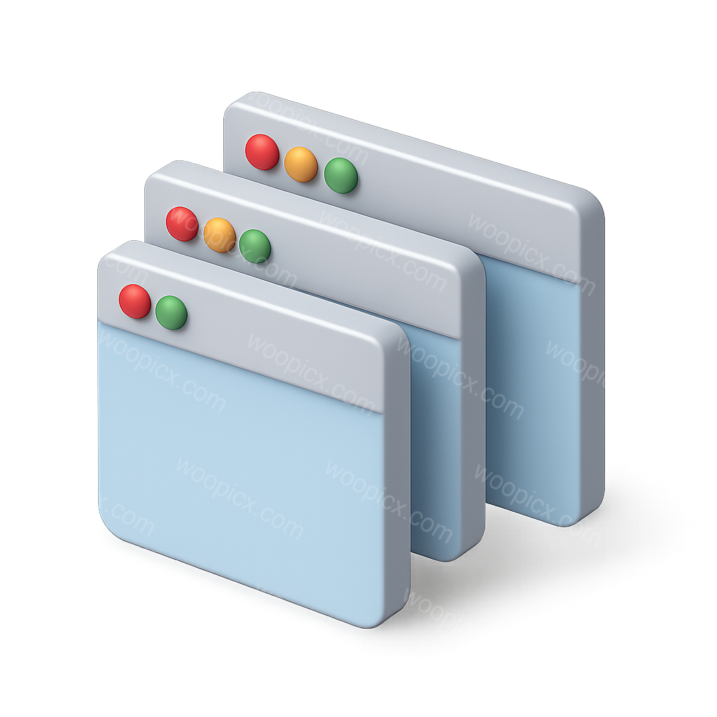 /Premium/Collection: /by davooda/Type: PNG/A visually appealing 3D icon featuring multiple overlapping windows in a three-quarter view. The design includes a transparent background and volumetric elements for depth.